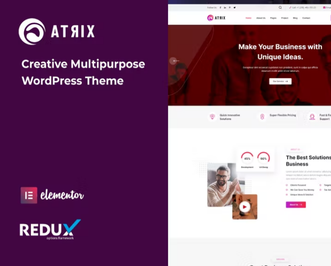 Atrix, çok amaçlı, güçlü, güzel ve yüksek performanslı bir WordPress Temasıdır. İhtiyaçlarınıza uygun çarpıcı bir tasarımı kolayca bulacaksınız. Atrix, twitter önyüklemesi (sürüm:5.0.0) ile oluşturulmuş web siteleridir. Bu tema, şirket geçmişlerini, hizmetlerini, çalışmalarını, portföylerini ve projelerini en yaratıcı ve profesyonel görünümde sergilemek için kurumsal, ajanslar, serbest çalışanlar, bireyler ve her tür işletme için uygundur. Birkaç kelimeyle, güçlü, kullanımı kolay çok amaçlı WordPress Teması.