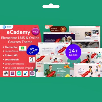 eCademy Online Kurslar ve Eğitim LMS WordPress Teması, EnvyTheme tarafından geliştirilmiştir. Tema, Elementor, ACF Pro, Redux, LearnPress, Tutor LMS v2.x, LearnDash, WooCommerce, BuddyPress, Bootstrap ve CSS gibi birçok özellikli bileşenle oluşturulmuştur.