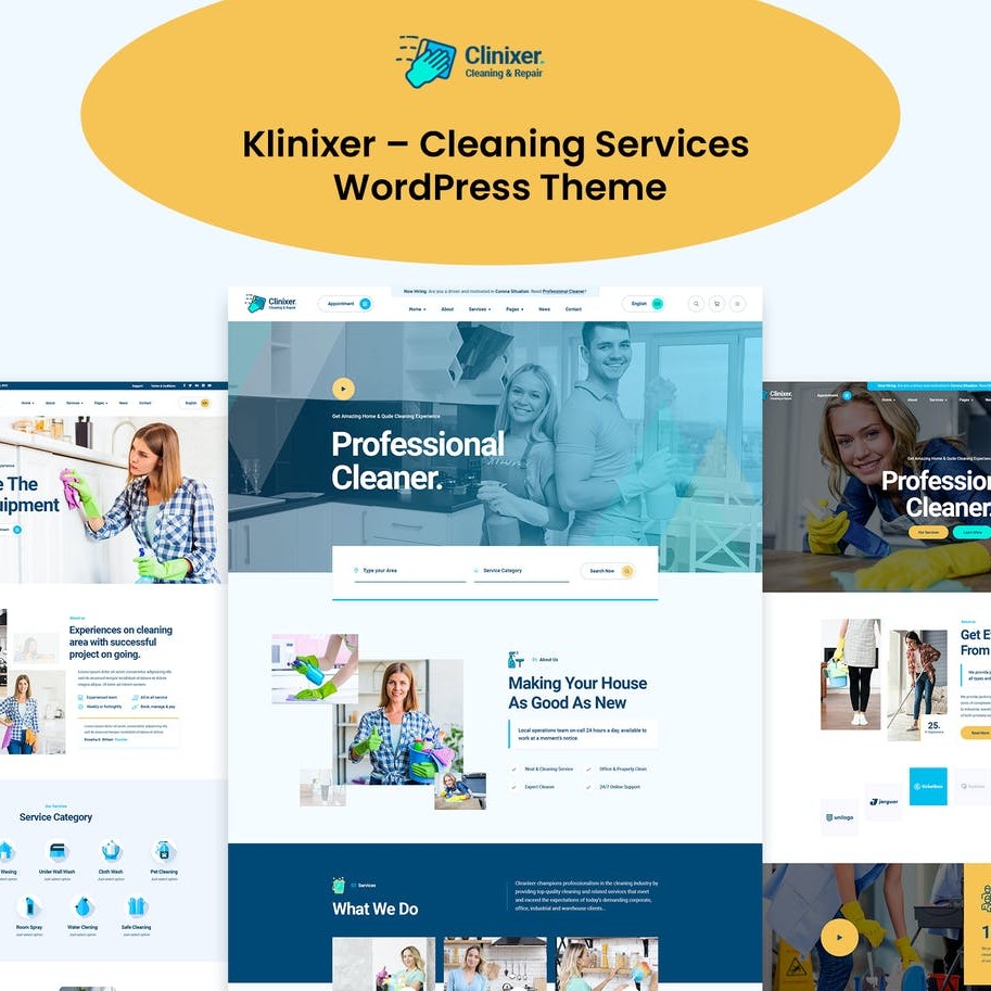 **Klinixer – Temizlik Hizmetleri WordPress Teması **