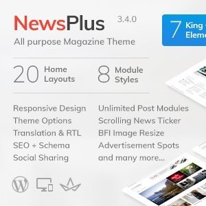 NewsPlus, e dergi, çevrimiçi gazete, seyahat blogu, yemek tarifi blogu, moda dergisi, kişisel blog veya editoryal ve inceleme web siteleri için mükemmel bir seçimdir. BuddyPress, bbPress forum, WooCommerce, TablePress, WPML ve daha pek çok eklenti için yerleşik stil desteği ile birlikte gelir.